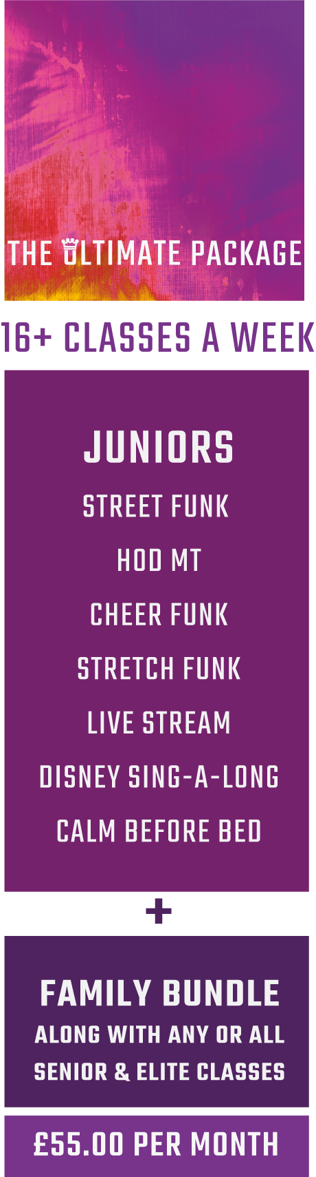 Plus a FAMILY BUNDLE along with any or all Senior and Elite classes
